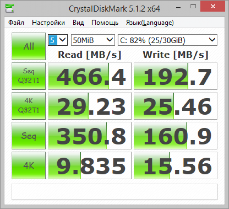 После проведения всех тестов, CrystalDiskMark выдаст результат со средней скоростью чтения/записи жесткого диска. Благодаря простому интерфейсу и наглядному представлению результатов, программой очень легко и удобно пользоваться.