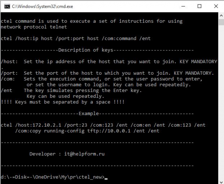 Ctel — это пакетный клиент Telnet. Ctel служит для подключения к устройствам через протокол Telnet и автоматически выполнял пакет заданных команд.