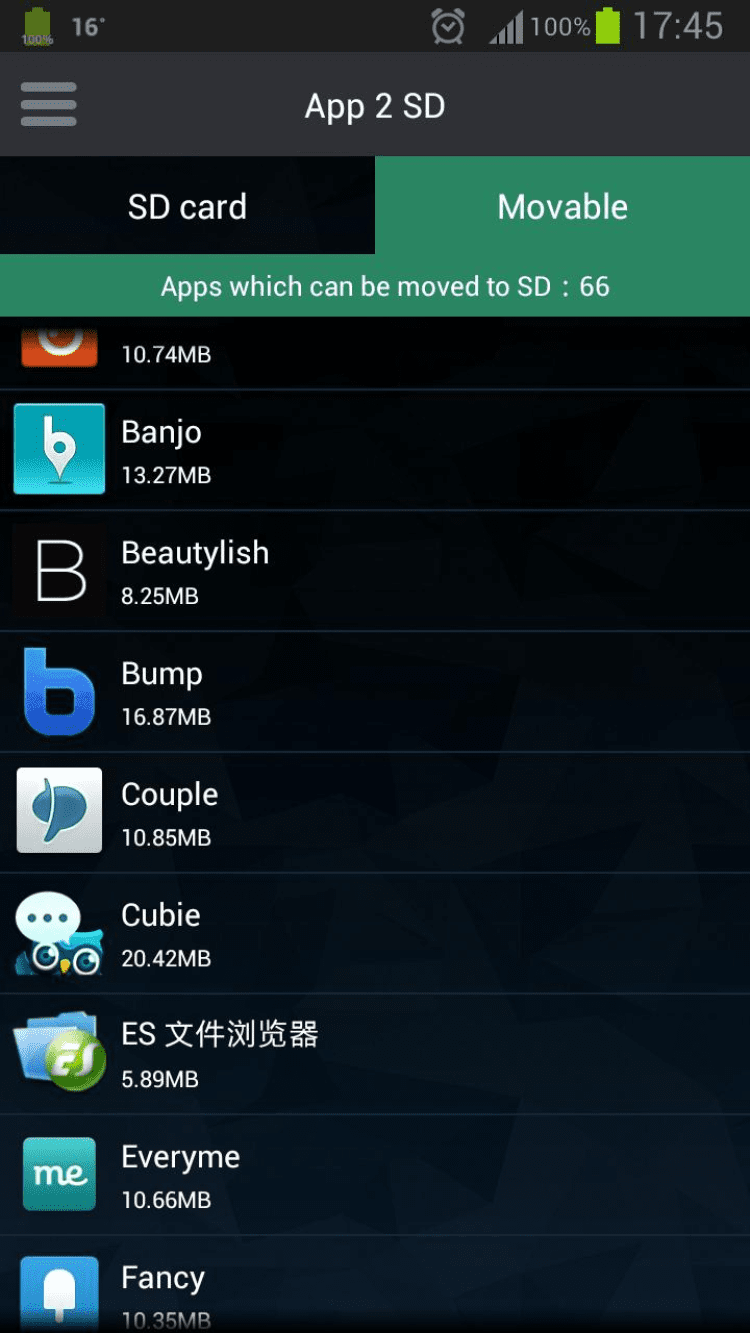 - перенос приложений: безопасный перенос приложений из памяти телефона на карту памяти SD;