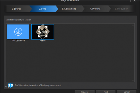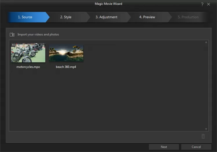 Запустив редактор в упрощенном режиме, вы будете встречены пошаговым мастером, который поможет импортировать видео и фотографии, и выбрать визуальный стиль (Broadway, Original, Fast Motion, Slow Motion и др.)