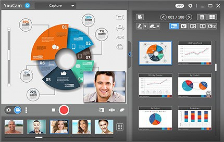 Если хотите увеличить и расширить возможности веб-камеры, рекомендуем скачать CyberLink YouCam. Программа позволяет использовать камеру, делая яркие снимки. Когда вы поймаете нужный кадр, можно отредактировать файл с помощью встроенного редактора с большим выбором инструментов.