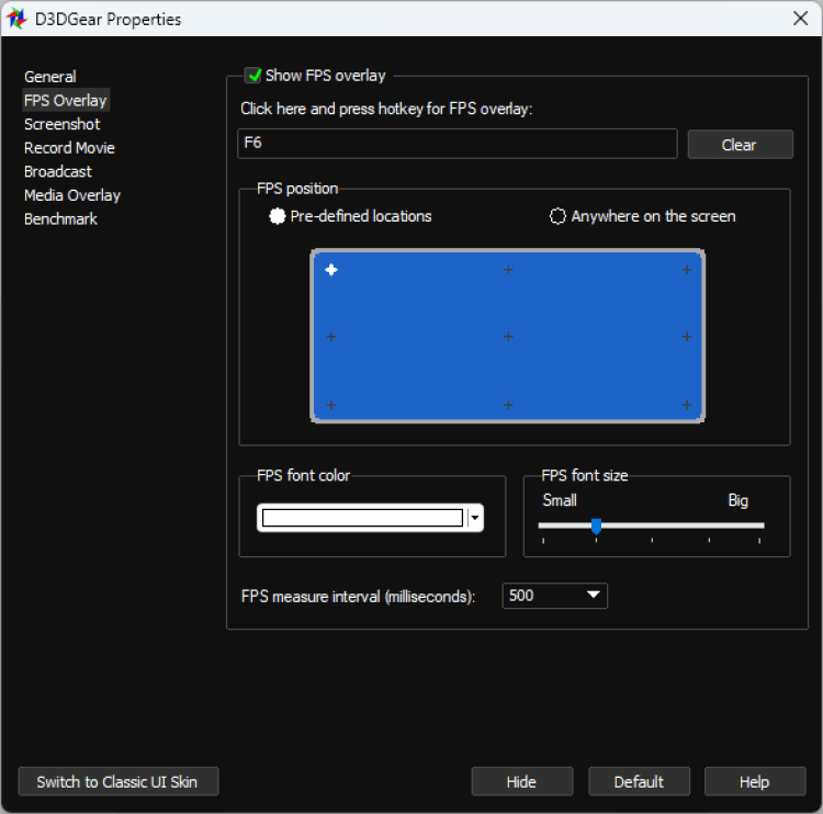 Также в настройках можно выбрать положение счетчика FPS, его цвет и прозрачность. Помимо FPS D3DGear также может отображать во время игры другие параметры компьютера. D3DGear умеет делать скриншоты. Горячую клавишу можно назначить в настройках. Там же можно выбрать папку для сохранения скриншотов, формат и некоторые другие параметры.