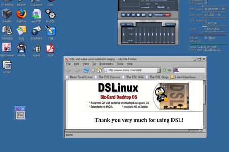 Как уже было отмечено, размер Damn Small Linux составляет всего около 50 мегабайт. При этом. перед вами вполне работоспособный Linux, созданный на основе Debian. Его можно использовать в виде LiveCD, то есть, записать его на оптический диск или USB-носитель и использовать операционную систему и все необходимые инструменты на любом ПК, без необходимости установки. Стоит также добавить, что путём установки дистрибутива DSL на компьютер, его можно трансформировать в полноценный Debian.