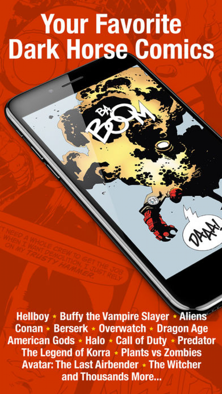 Dark Horse Comics С этим приложением, ваши любимые комиксы от Dark Horse будет всегда с вами, куда бы вы ни отправились. В Dark Horse Comics вы найдете такие тайтлы, как: Angel, Axe Cop, Baltimore, Beasts of Burden, B.P.R.D., Buffy the Vampire Slayer, Conan, Doctor Solar, Dragon Age, Dungeon Siege, Emily the Strange, Empowered, Joss Whedon's Fray, The Goon, Grendel, The Guild, Hellboy, Hellsing, Kull, Let Me In, Lone Wolf and Cub, Mass Effect, Rage, Serenity, Frank Miller's Sin City, Star Wars, Tarzan, The Terminator, The Umbrella Academy, Trigun, Troublemaker, Usagi Yojimbo and many more.