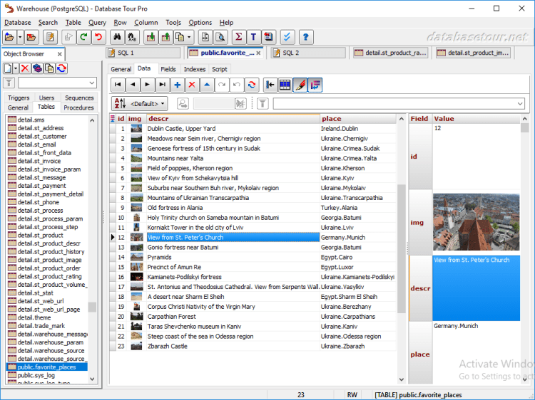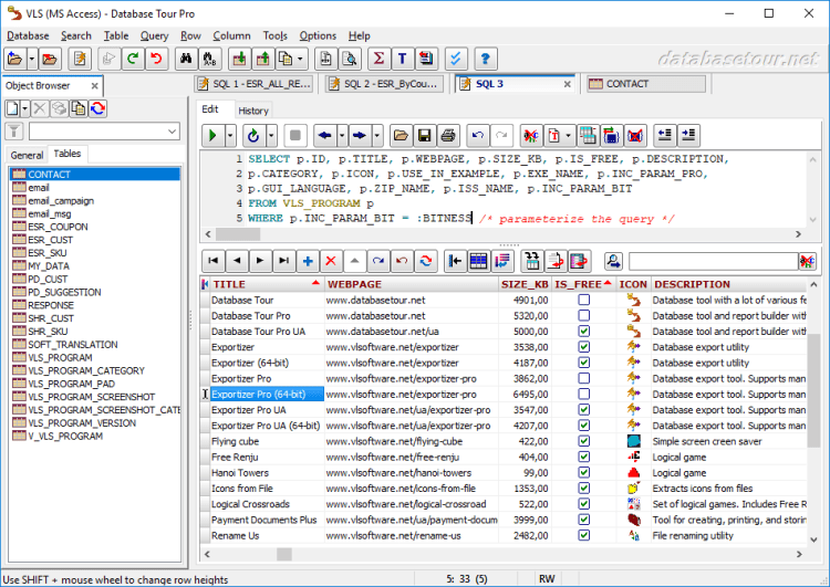 Database Tour - это мощный инструмент для работы с базами данных, который работает с данными в различных форматах и облегчает или автоматизирует наиболее часто используемые операции с базами данных. Он позволяет выполнять просмотр и редактирование данных, построение отчетов и печать данных, построение запросов, импорт/экспорт данных, поиск и замену текста и многое другое.
