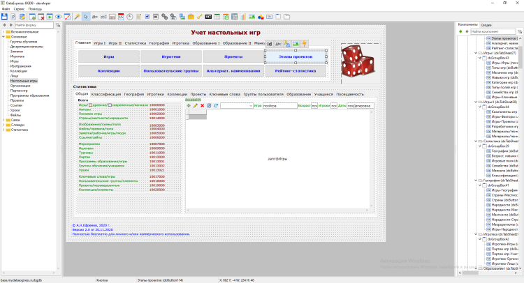 Цель проекта "DataExpress" - сделать процесс разработки баз данных относительно простым занятием даже для людей, далеких от программирования. Конструктор берет на себя много работы. Просто добавьте форму с необходимыми компонентами, а программа сама создаст готовый интерфейс для ввода и поиска данных. При должном опыте, создание простой базы данных может занять всего лишь несколько часов.