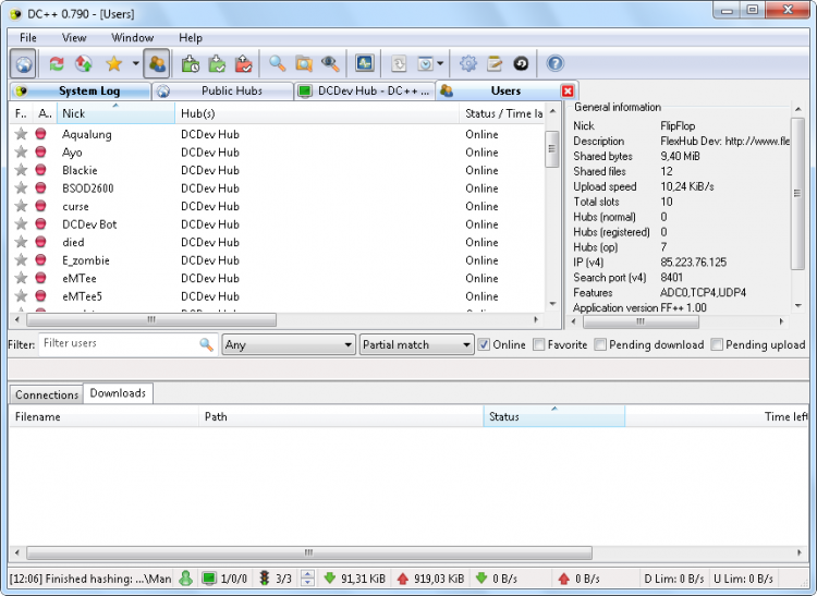Поддерживает хеширование и скачивание из нескольких источников. Имеет развитую функциональность чата. Для осуществления файлового обмена необходимо подключение к серверу сети, так называемому хабу. Каждый пользователь сети разрешает доступ к содержимому некоторых своих папок. Впоследствии любой другой пользователь сети может скачать эти данные с его компьютера. Происходит прямое соединение двух компьютеров, и один компьютер начинает передавать данные другому.