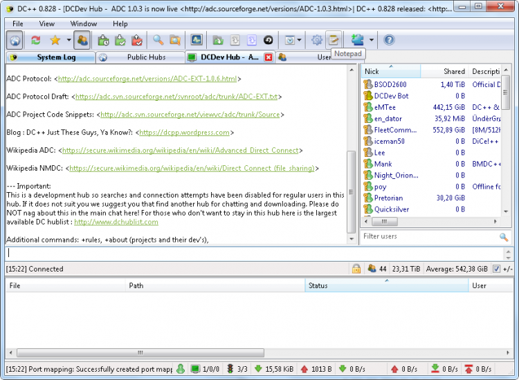 DC++ - это свободный и открытый клиент файлообменной сети Direct Connect. Клиент включает всё необходимое для работы. Отличается от других конкурентов надёжностью работы и стабильностью обновления дистрибутива.