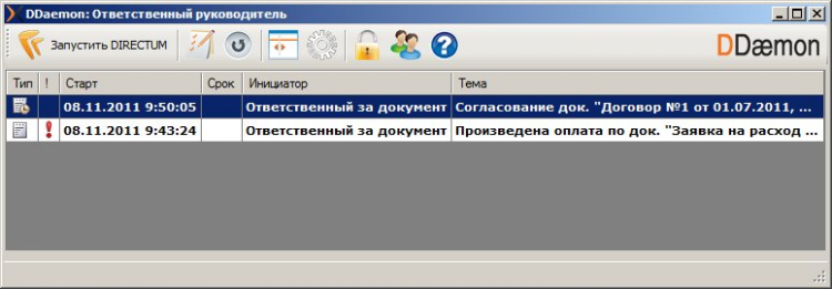DDaemon® – это приложение для системы электронного документооборота DIRECTUM®, которое позволит организации сократить затраты на внедрение, поддержку и развитие системы. Оно осуществляет оперативное оповещение пользователей о поступающих заданиях и уведомлениях в DIRECTUM® без использования клиентской лицензии, лицензия необходима только для открытия задания или проводника системы.