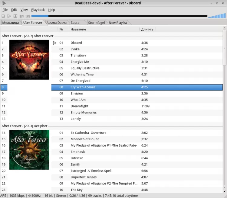 - поддержка национальной кодировки win-1251 в тегах ID3 и cuesheet, автодетектирование кодировок win-1251 и ISO 8859-1