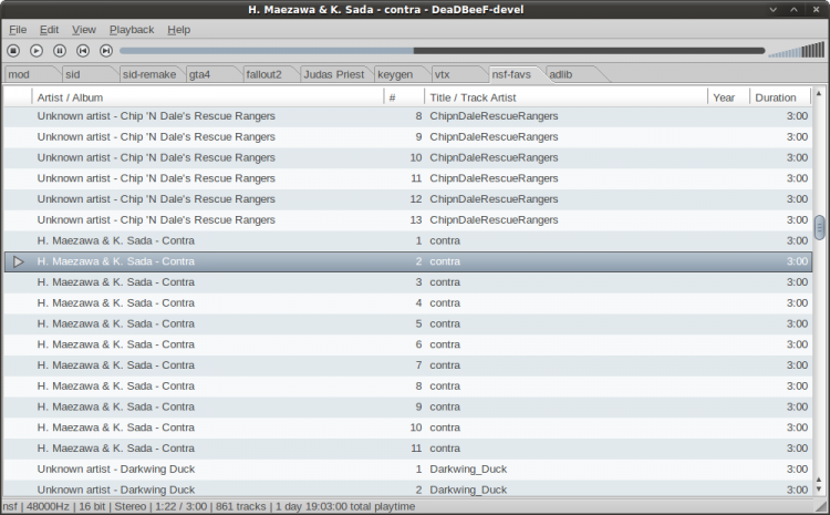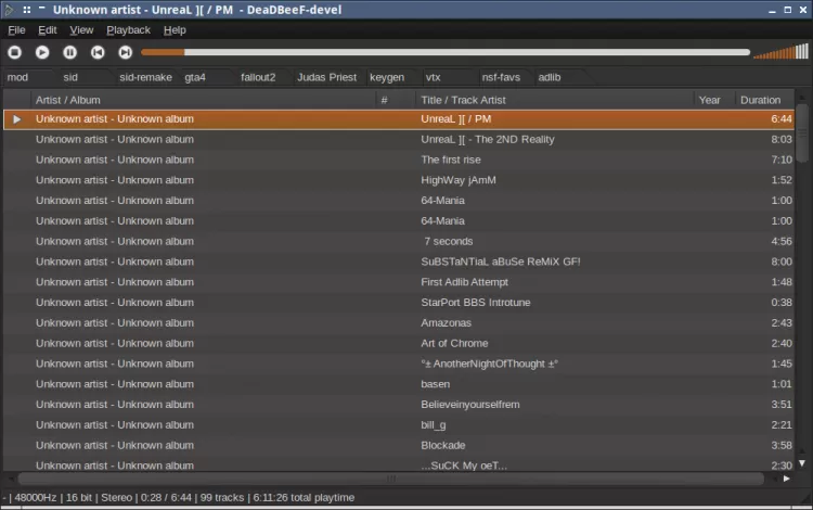 - поддержка воспроизведения форматов mp3, flac, ape, tta, ogg-vorbis, wavpack, mpc, AAC (m4a), ALAC, wma, wav, DTS, audio CD, множества форматов трекерной музыки и музыки с игровых приставок