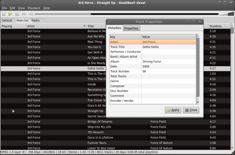 DeaDBeeF Компьютерная программа для воспроизведения аудиофайлов, музыкальный проигрыватель. Является свободным ПО и распространяется бесплатно.