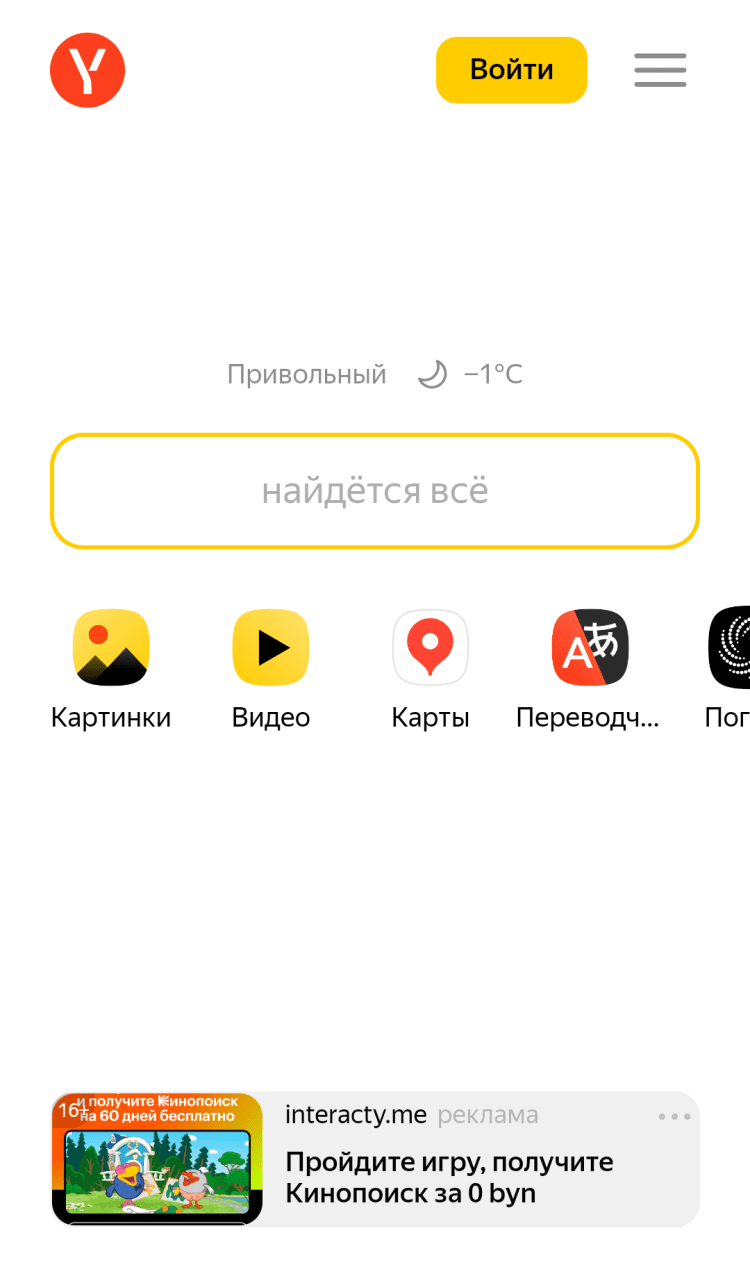- Стартовая страница.