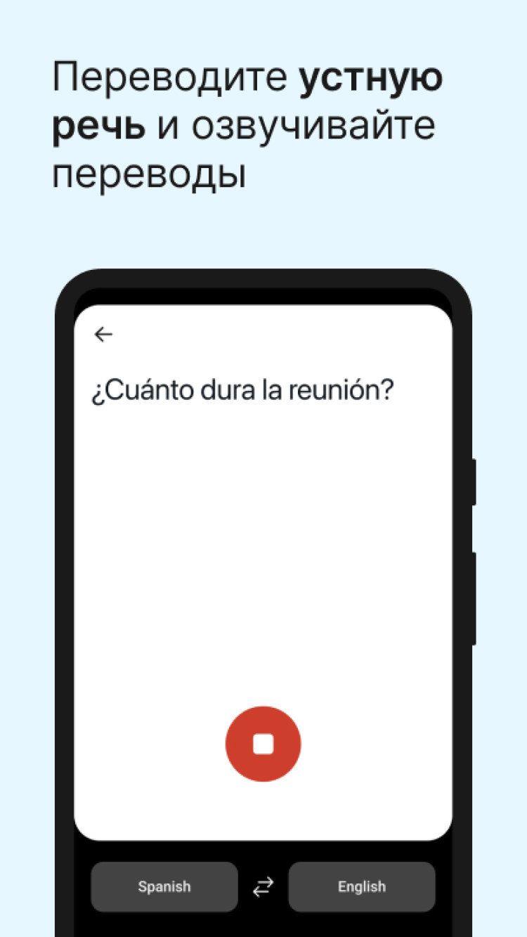 - функции голосового перевода и озвучивания переведенного текста