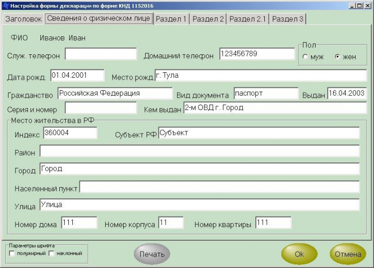 Декларация - программа позволит Вам сэкономить время при заполнении налоговых деклараций по вмененной или упрощенной системе налогообложения (формы КНД 1152016 и 1152017), форма ПД-4. Один раз введите в зарегистрированной версии данные о налогоплательщике и Вам никогда больше не придется заполнять форму декларации, боясь допустить ошибку или описку. Вы никогда больше не будете зависеть от Вашего налогового инспектора, тратить время в очередях или просить помощи в заполнении формы. Наоборот, теперь Вы сами сможете помочь другим - тем, кто еще не пользуется программой "Декларация"!