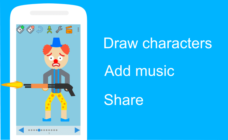 Придумайте сюжет, нарисуйте ролик, озвучьте его и поделитесь с друзьями на Facebook или Youtube. Автоматическое построение видео по раскадровке и скелетная анимация на сенсорном экране делают создание мультфильмов настолько простым, насколько это возможно.