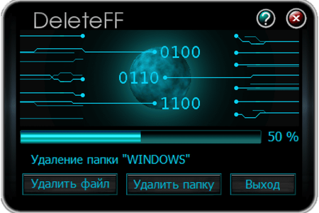 DeleteFF надёжно и безвозвратно удалит файлы и папки с Вашего компьютера и переносных носителей таких как USB-накопители или карты памяти. Для удаления используется тройная перезапись информации содержащейся в файле случайными данными что гарантированно предотвращает попытки получить доступ к файлу известными программами востановления. Приложение не требует установки на ПК и работает с флешки, карты памяти, внешнего жёсткого диска или смартфона подключенного в режиме USB-накопителя.