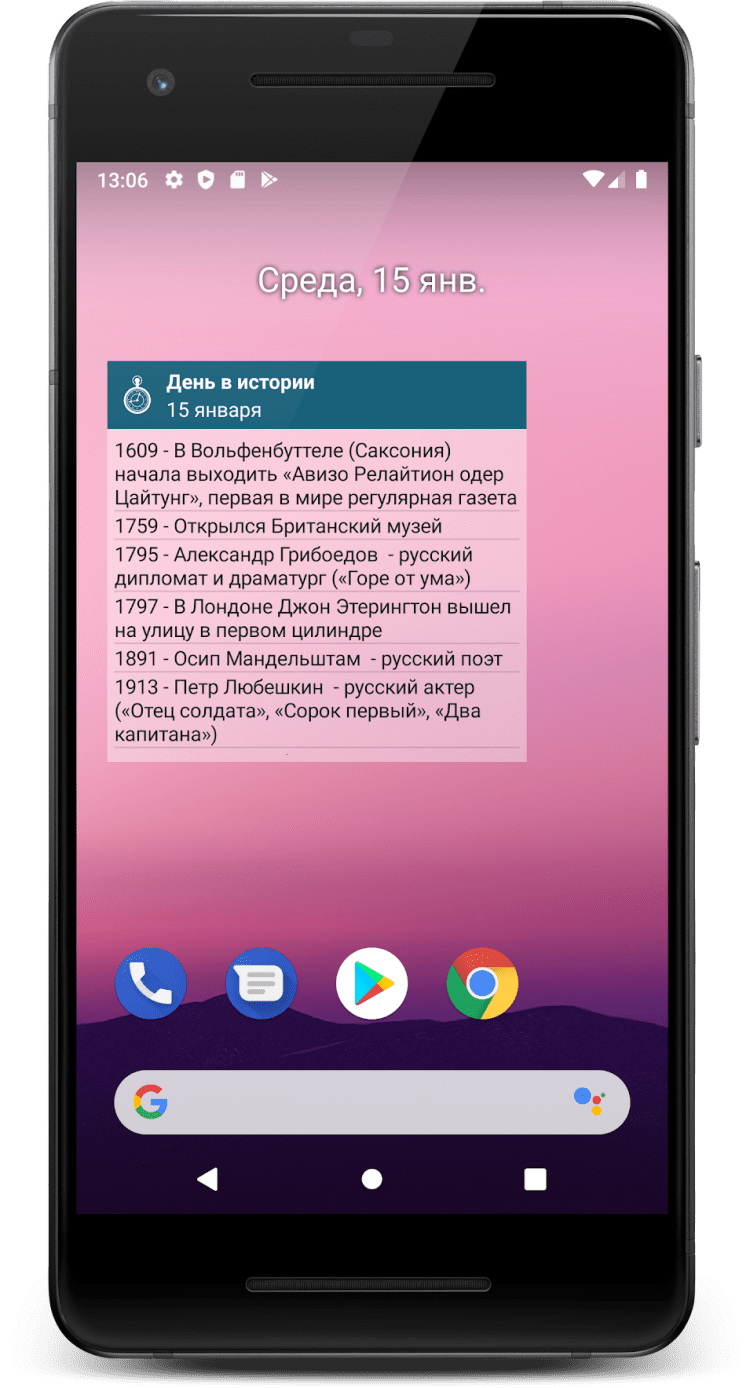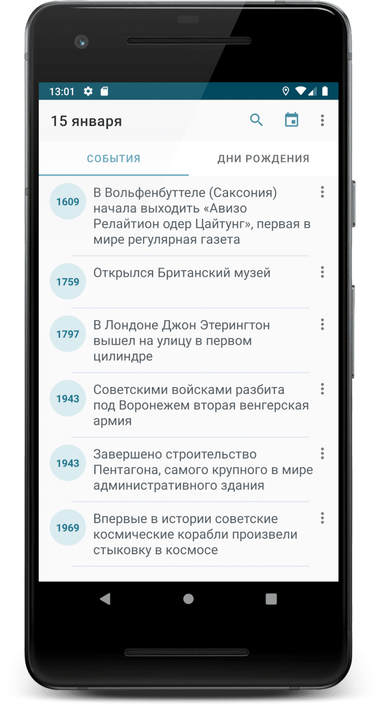 День в истории Что произошло в этот день в истории. Факты и дни рождения. Познавательное приложение и виджет День в истории выводит важнейшие исторические события и дни рождения выбранного дня.