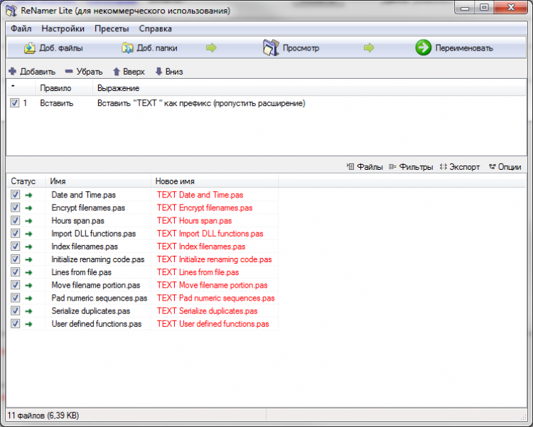В Den4B ReNamer вы можете создавать правила для переименования файлов. С помощью этих правил можно добавлять суффиксы и постфиксы к названиям, заменять или удалять ненужные символы, добавлять порядковые номера и многое другое. При этом для переименования одного файлы можно использовать сразу несколько правил.