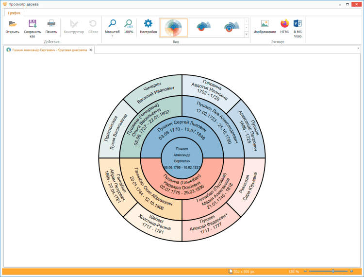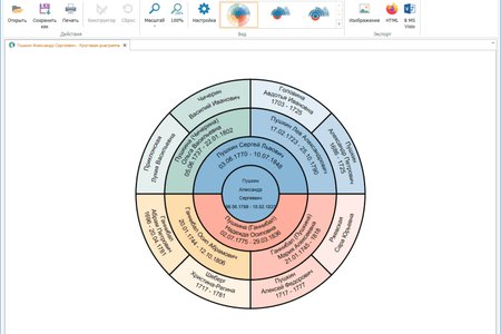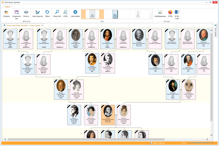 - возможность масштабирования при отображении родословного дерева;