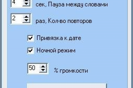 - Привязка к дате (да или нет) - Если включена, то при повторных запусках программы будут проигрываться те же диалоги, что и при первом запуске, пока не наступит следующий день. - круг показывает сколько раз Вы прослушали все диалоги из папки. Пример: допустим у нас в папке с примерами "449" файлов, и количество слов для изучения равно "10". - если привязка к дате есть, то при первом запуске и при последующих будут проигрываться 1-10, на следующий день 10-20 и т.д. - если привязки к дате нет, то при первом запуске будут проиграны 1-10, при следующем 10-20 и т.д. Примечание: все диалоги берутся из папки "word". Они могут иметь любые имена, формат файлов "mp3". После проигрывания последнего диалога программа автоматически выключается.