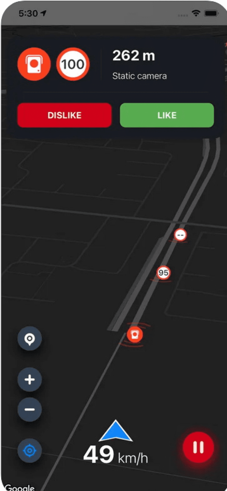 Детектор камер скорости — это приложение поможет вам своевременно узнать о камерах скорости, плохой дороге, лежачих полицейских и других угрозах. Позволяет пополнять базу угроз самостоятельно, а также позволяет отфильтровывать угрозы, информация о которых вам не интересна.