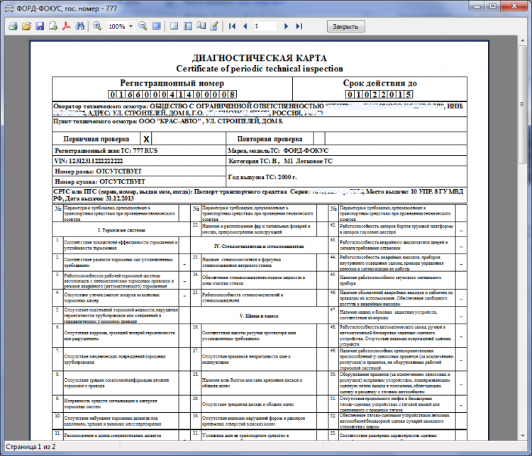 Диагностическая карта транспортного средства - это программа предназначена для учета транспортных средств и выдачи диагностических карт установленной формы с регистрацией в сервисе ЕАИСТО. Программа работает на платформах Windows.