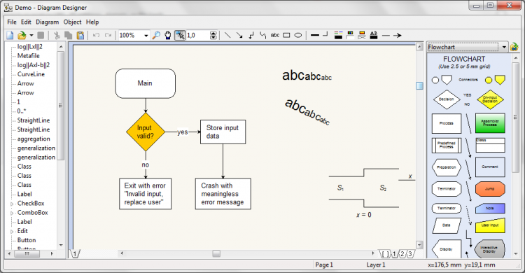 Diagram Designer - это векторный редактор, который позволяет создавать UML диаграммы, иллюстрации, блок-схемы и слайд-шоу. Он включает в себя панель с набором настраиваемых шаблонов, редактор математических графиков, и проверяет текст на ошибки. В его арсенале также имеется продвинутый "карманный" калькулятор, способный решать уравнения.