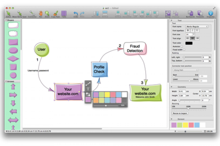Diagrammix позволит сфокусировать внимание на самом главном. Она автоматически соединяет эллементы, изменяет их размер при вводе текста и выравнивает эллементы и соединители. В программе имеет коллекция фигур и соединителей, так что можно не тратить время на их создание, а просто использовать уже готовые.