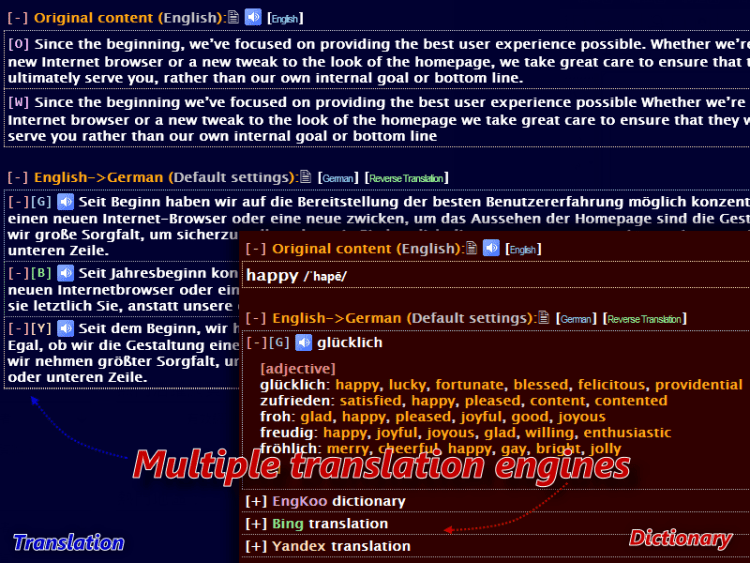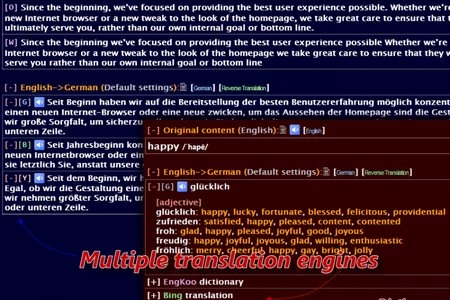 Dictionary .NET - это программа-переводчик, использующая сервисы Google Dictionary, Google Translate, Suggest и Wikipedia. Поддерживаются 66 языков, которые можно использовать как в качестве исходных, так и в качестве конечных. Помимо использования для перевода в поле поиска в окне программы, позволяет иметь мгновенный перевод, при чтении электронной почты, документов или работы в Интернете. Не требует установки.