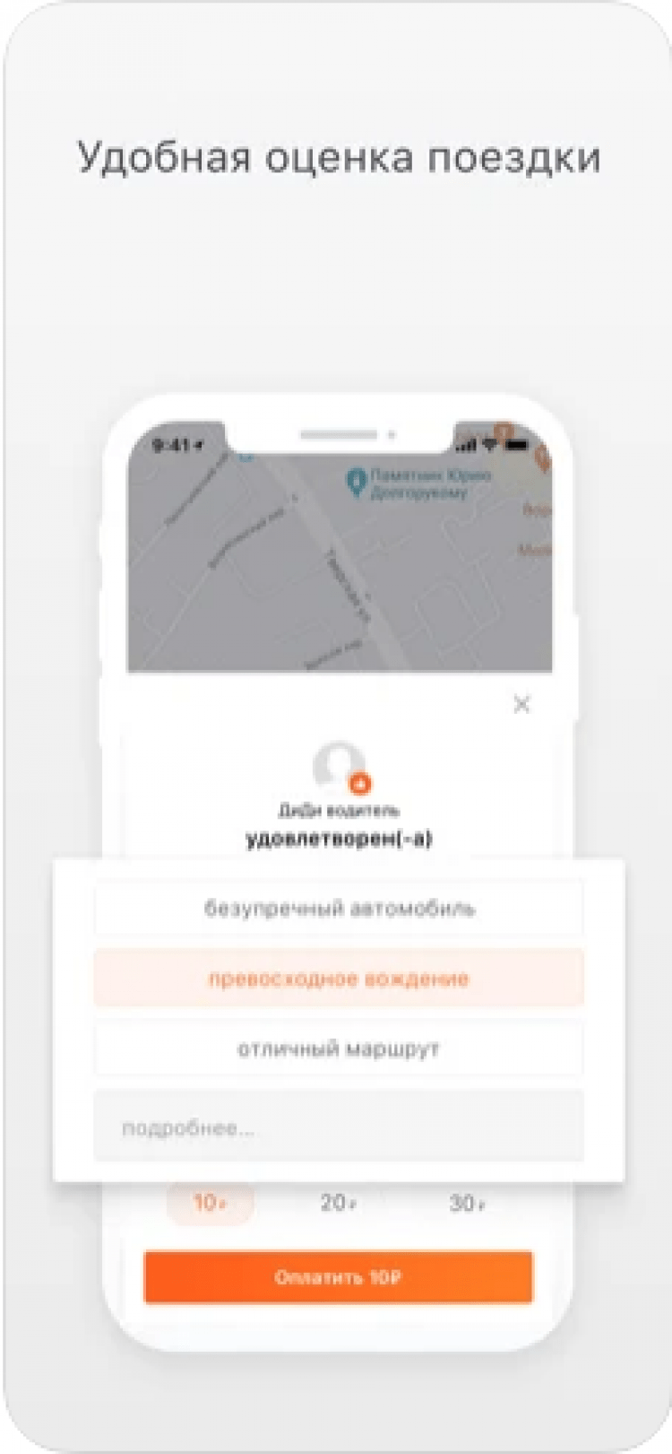 - возможность оценить поездку;