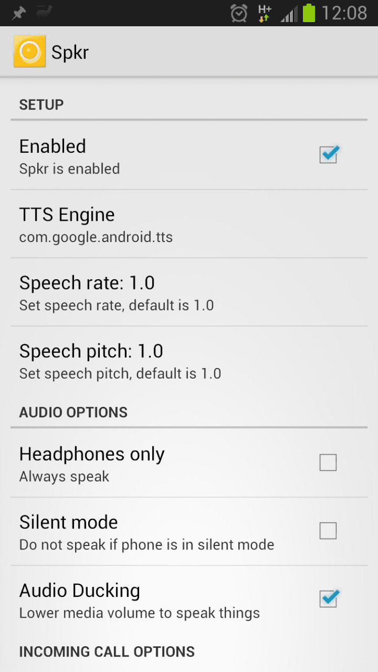 Диктор для звонков и SMS. Эта программа будет озвучивать телефонный номер или имя звонящего или отправившего вам СМС контакта, если тот имеется у вас в телефонной книге. Вы сможете настроить произношение, а так же активировать его только при подключении наушников. Помимо этого, вы сможете включить индивидуальное произношение только для СМС или только звонков.