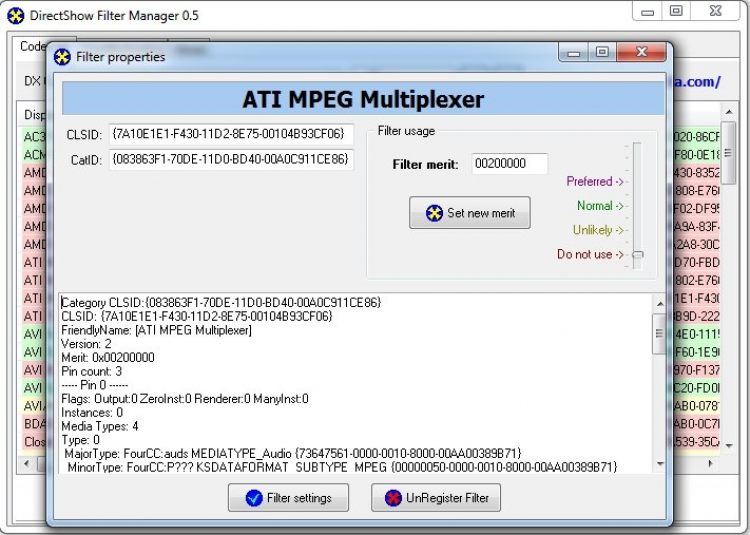 Скачайте DirectShow Filter Manager с goida-soft.ru.