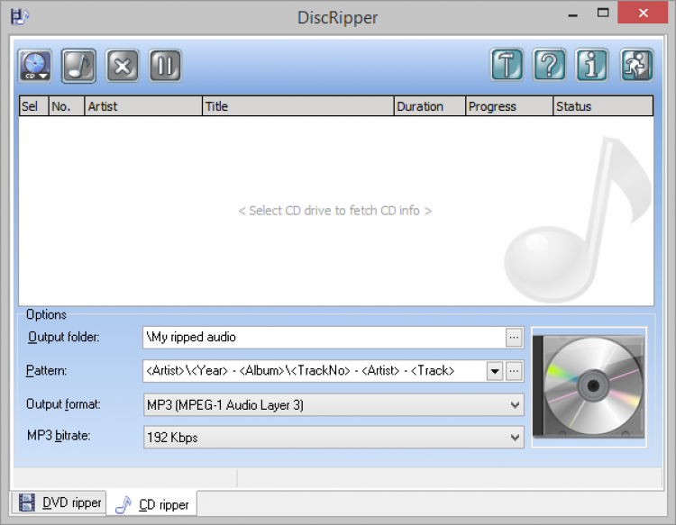 Помиомо DVD дисков, DiscRipper позволяет "рипать" треки с аудио дисков. Музыку можно сохранять в формте MP3, APE, OGG или WAV.