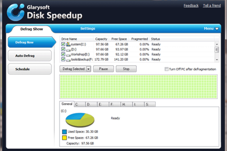 Утилита для анализа и дефрагментации локальных дисков. Оптимизирует и дефрагментирует диски для получения максимальной производительности работы системы. Присутствует опция автоматической дефрагментации, которая будет запускаться когда компьютер находится в режиме ожидания, и функция планировщика, при помощи которого, можно настроить запланированный запуск.