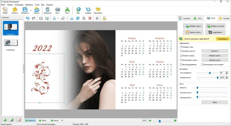 С её помощью можно с лёгкостью создавать стильные фотокалендари высокого качества. Достаточно выбрать формат и оформление проекта, добавить фотографию и получить превосходный результат. Программа позволяет подготовить сотни вариантов календарей в самых разных стилях: классическом и современном, строгом или изящном, деловом или романтичном.