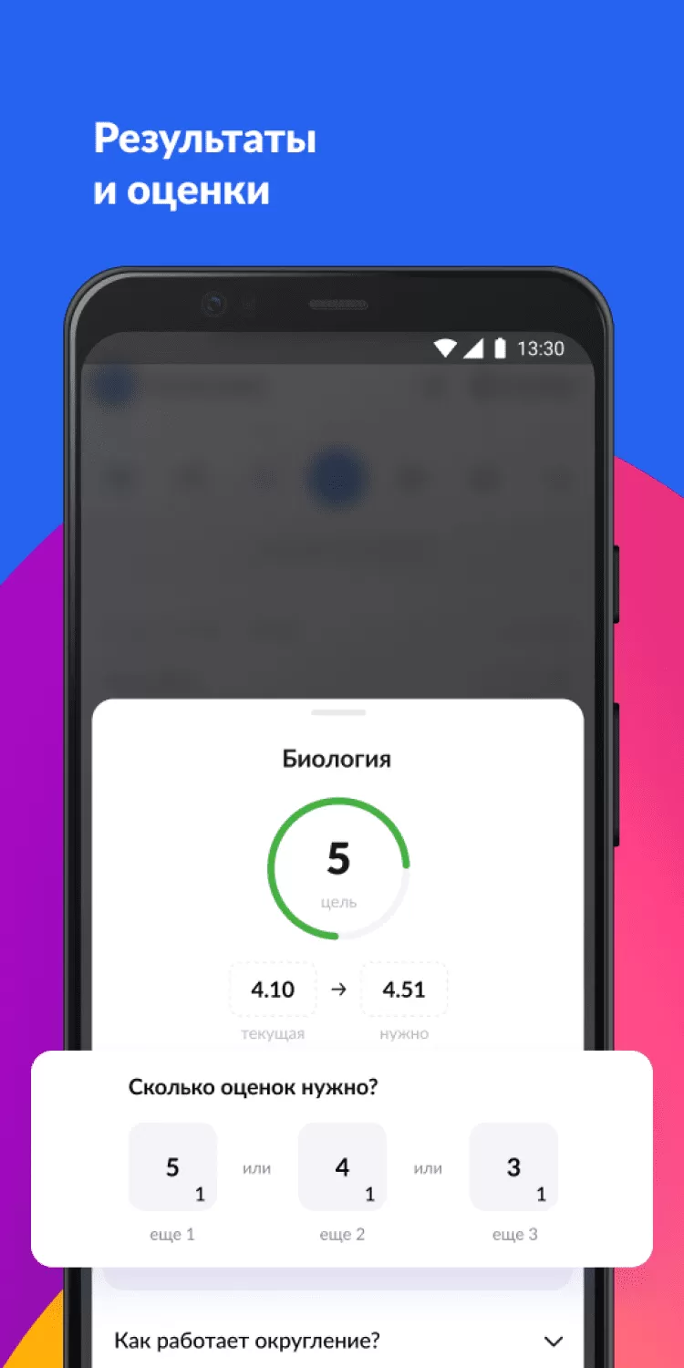 - узнавать детальную информацию об оценках;