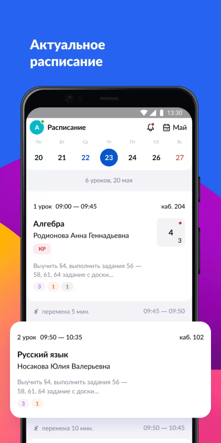- просматривать актуальное расписание;