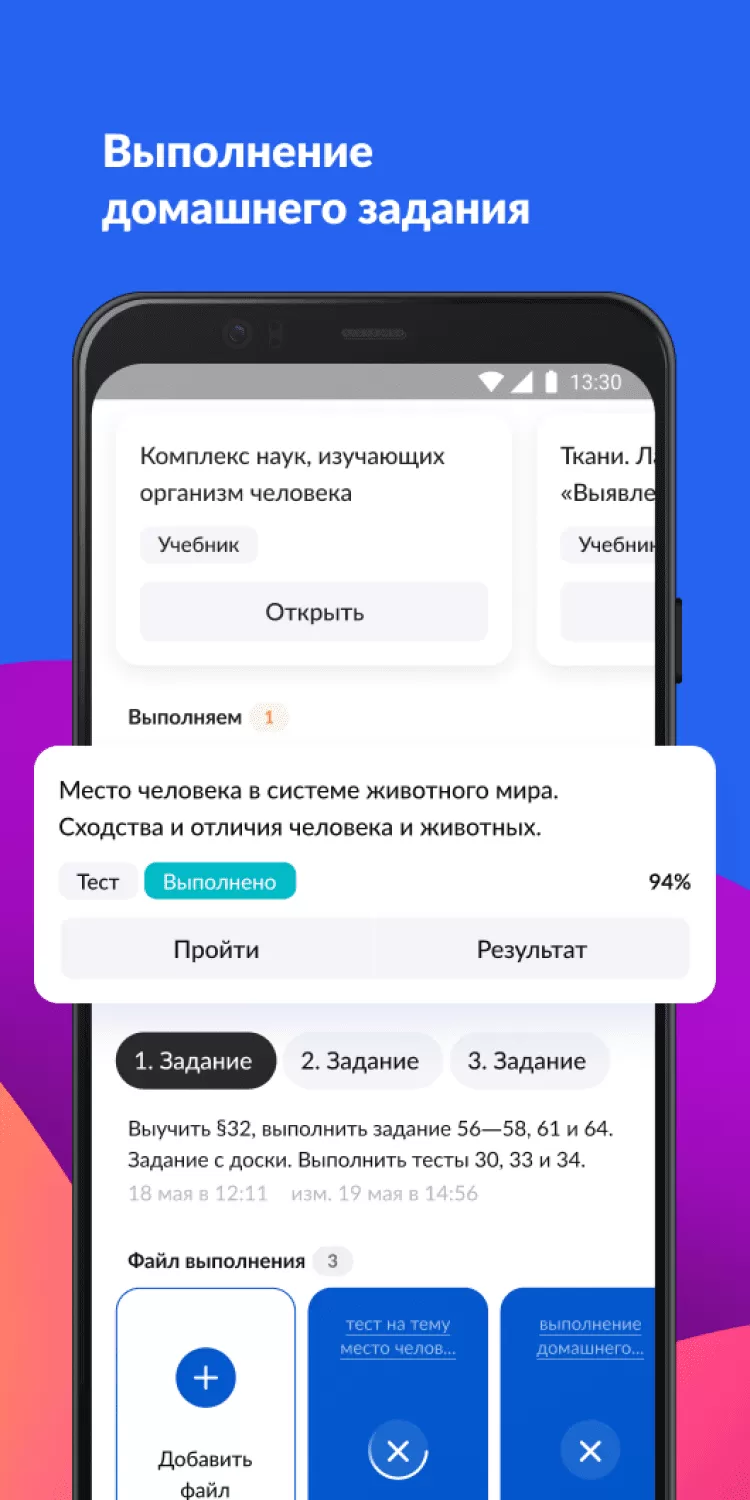 - скачивать вложения к домашнему заданию;
