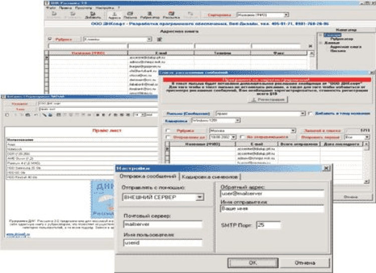 ДНК-Рассылка - это программа предназначена для массовой и выборочной рассылки электронной почты, включающая в себя адресную книгу с рубрикатором, что позволяет осуществлять рассылку почтовых сообщений только определенной категории пользователей, а не всем подряд.