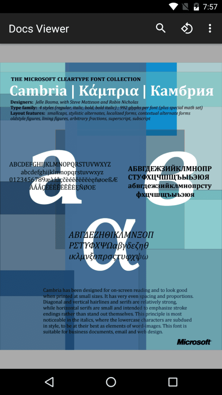 Программа для просмотра документов PDF и Microsoft Office на мобильных устройствах Android, используя Google Docs или Drive. Программа интегрируется с браузером, что позволяет начинать работу с документами практически мгновенно.