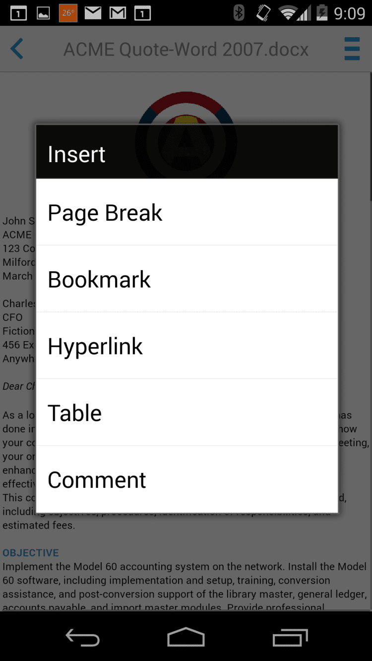 - Word To Go. Данный инструмент позволит вам осуществлять стандартные операции в работе с текстовыми документами: менять шрифт, его размер, добавлять таблицы, закладки, комментарии, а так же многое другое.