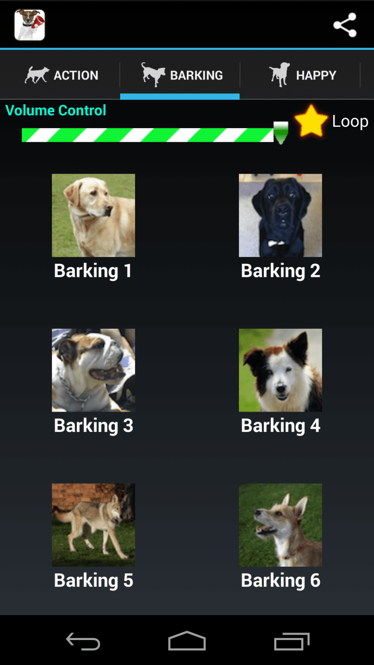 Dog Sounds Приложение, при помощи которого вы сможете насладиться звуками собачьего рычания и лая в любом месте и в любое время. Используйте эти звуки для развлечения или играйте со своими любимцами. Каждый звук можно зациклить, чтобы не включать все время заново.