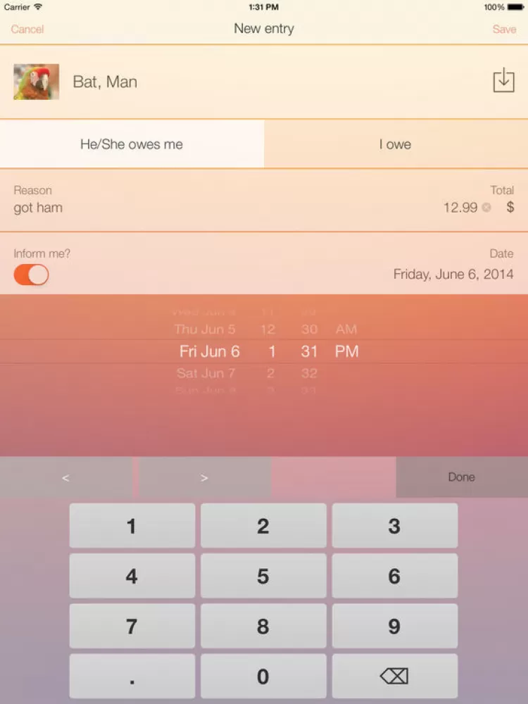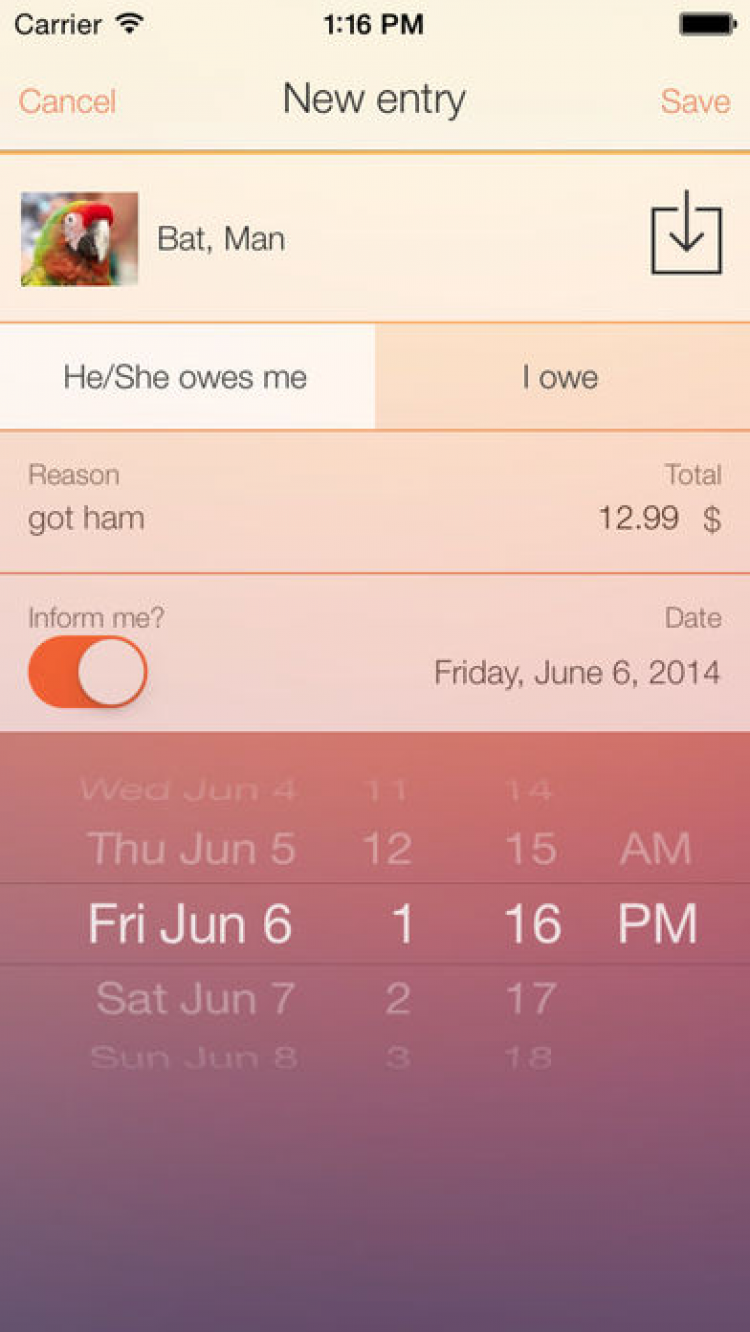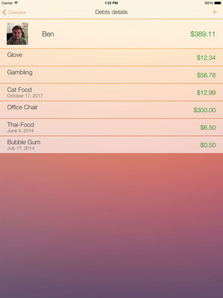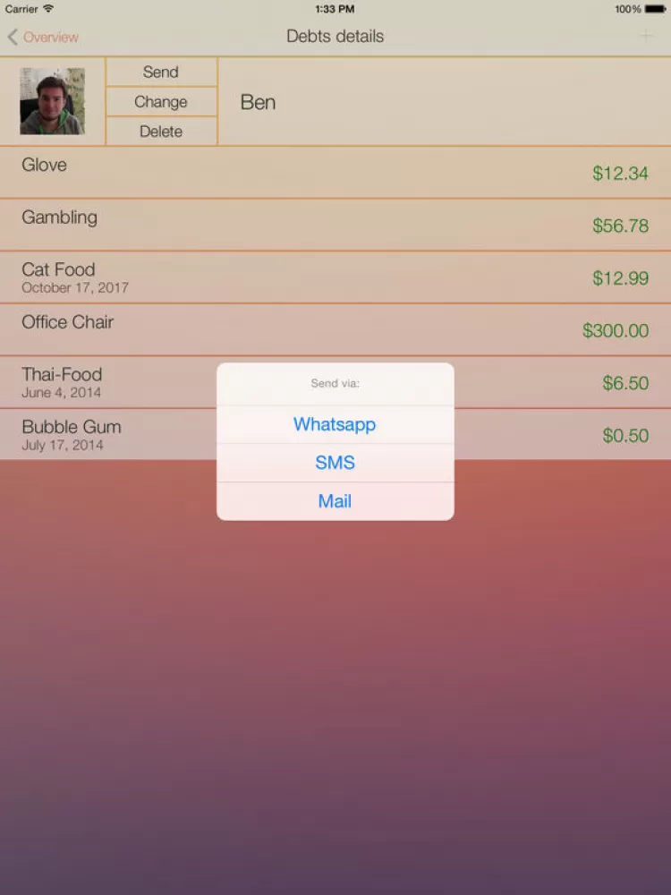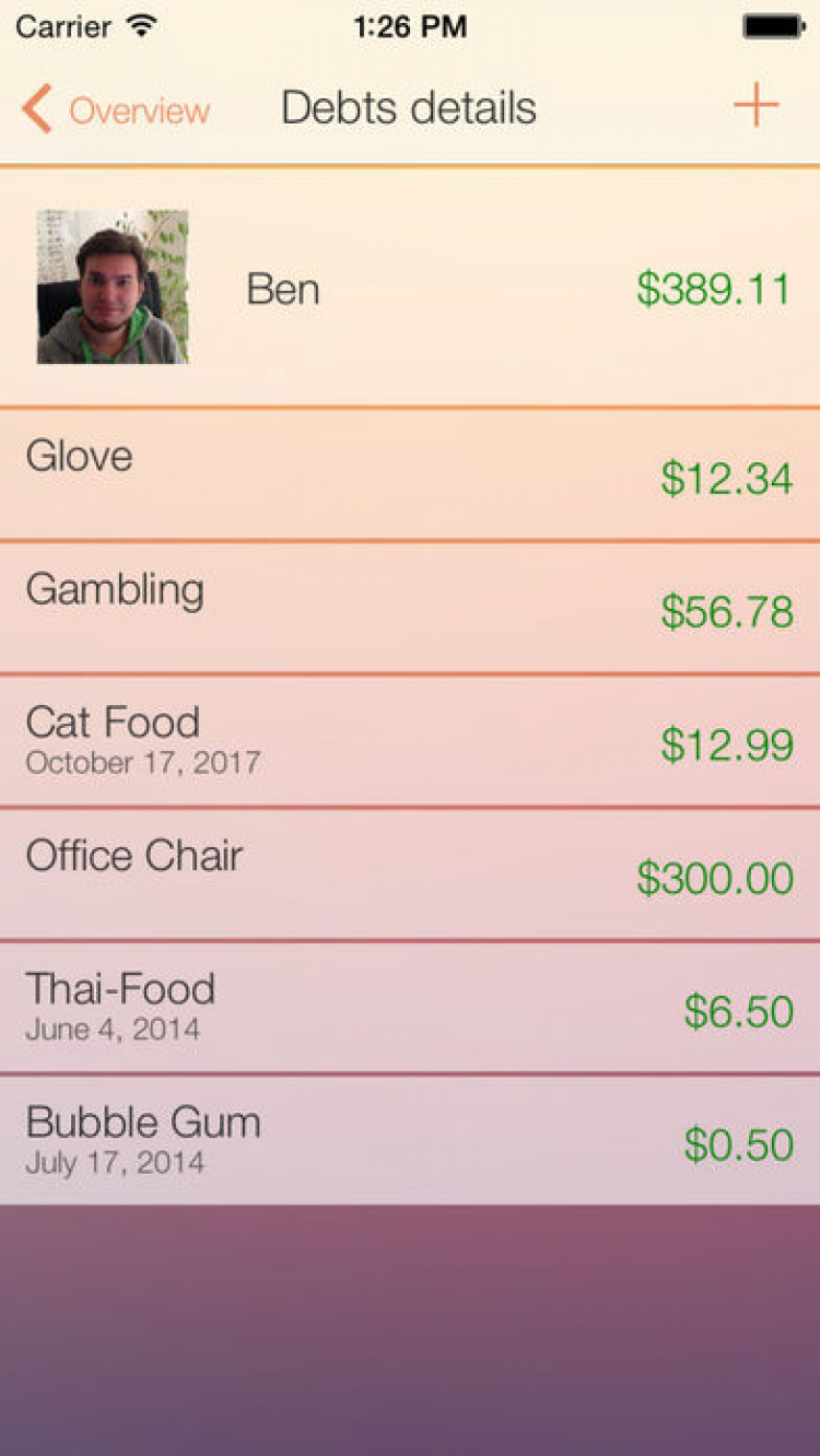 Должники Твои друзья постоянно просят у тебя денег взаймы? И ты часто забываешь об этом? Тогда приложение "должники" разработано специально для тебя. С помощью этого приложения тебе легко будет понять, кто сколько тебе должен. Все займы суммируются. ( Например: 200 руб.за пиццу, 400 руб.за кино, общая сумма: 600 руб.) Ты также можешь отмечать, сколько денег ты должен своим друзьям. В приложении имеются тексты, которые ты можешь скопировать. Такие тексты ты сможешь отправить своим друзьям по смс, чтобы напомнить им о долгах.