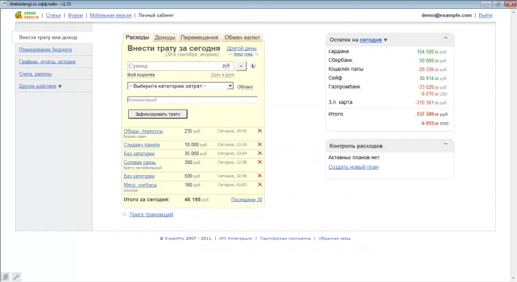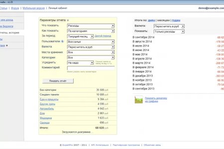 Эта программа является оффлайновой версией сервиса drebedengi.ru, и может синхронизировать локальную базу с онлайновой. Вы можете вносить новые транзакции с любого компьютера через сайт, а после запуска программы она автоматически загрузит новые данные. С помощью программы Домашняя бухгалтерия "drebedengi.ru оффлайн" можно вести полный учет расходов, доходов и долгов. Наглядные графики отобразят динамику изменения вашего финансового состояния (в целом или по категориям). Она может вести учет в разных валютах и автоматически обновлять курсы валют из Интернета.