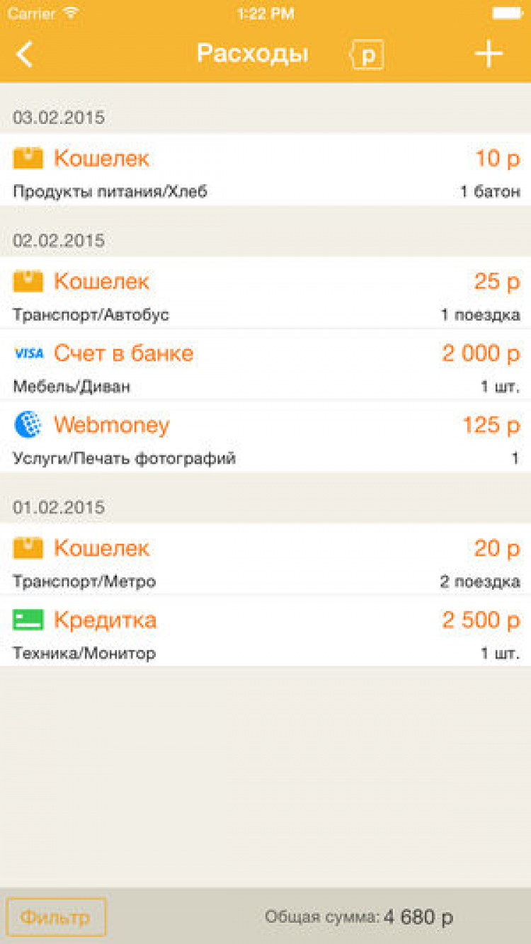 Домашняя бухгалтерия Программа предназначена для ведения учета домашних финансов на iPhone. "Домашняя бухгалтерия" проста в использовании и не требует от пользователя знаний бухгалтерского учета. Несмотря на свою простоту в использовании, "Домашняя бухгалтерия" это мощный, функциональный и гибкий инструмент для учета финансов. В программе имеются такие возможности как учет расходов, доходов, денег отданных и взятых в долг, учет средств на неограниченном количестве счетов. В "Домашней бухгалтерии" имеется возможность вести записи в нескольких валютах. Система отчетов позволяет строить множество разнообразных отчетов. Если программой будут пользоваться несколько человек, то записи можно вести независимо друг от друга, входя в программу под разными именами. Для обеспечения конфиденциальности вводимой информации, любое имя можно защитить паролем.