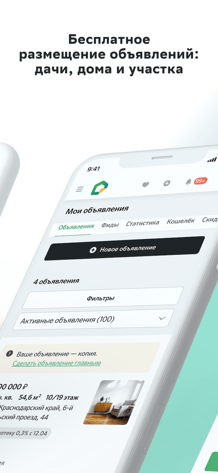 - доступ к огромной базе квартир в новостройках, готового жилья, домов, земельных участков и коммерческой недвижимости;
