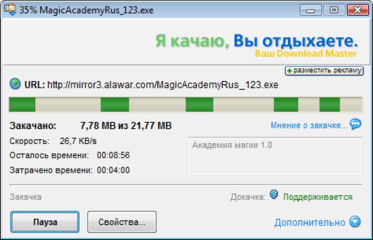 Приложение является эффективным инструментом для ускорения скачивания и возобновления прерванных загрузок. Загружаемый файл разбивается на несколько частей, каждая из которых сохраняется одновременно, в результате чего время скачивания заметно уменьшается. Благодаря функциональным способностям программы стало проще управлять загруженными файлами: определять тип и разбивать по соответствующим подразделам.
