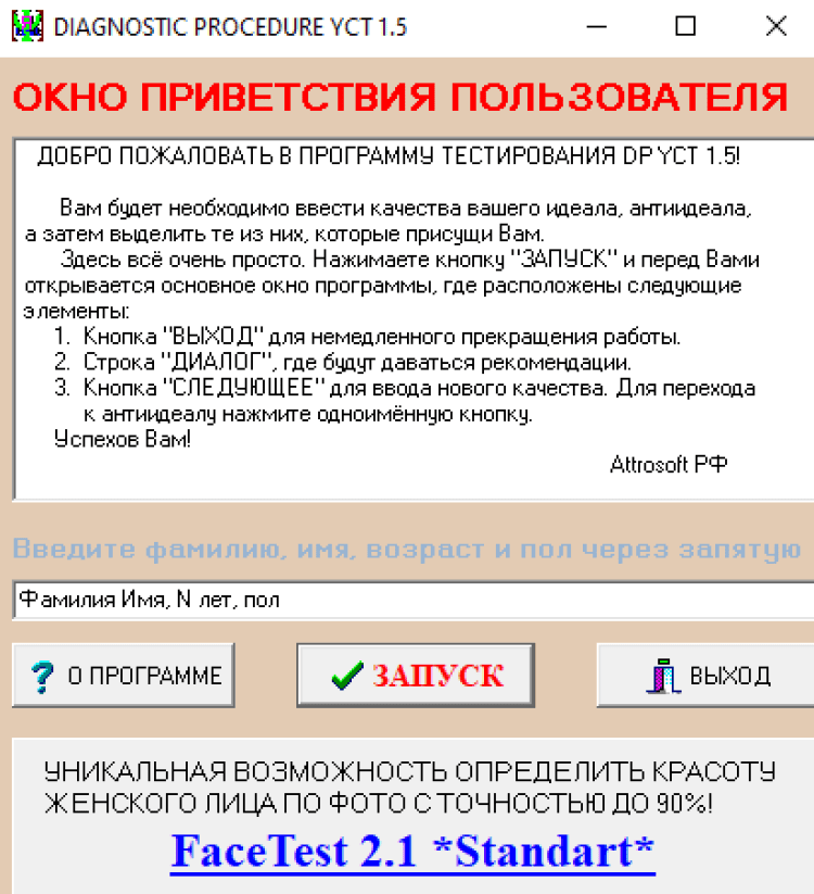DP YST - это интересная программа, позволяющая ОПРЕДЕЛИТЬ САМООЦЕНКУ. Определение самооценки - важный этап к пониманию себя и собственных проблем. Данная программа базируется на апробированной психологической методике, ведёт журнал клиентов, а потому может использоваться даже профессионалами. В версии 1.5 устранены улучшен дизайн, а также уменьшен объём дистрибьютива.