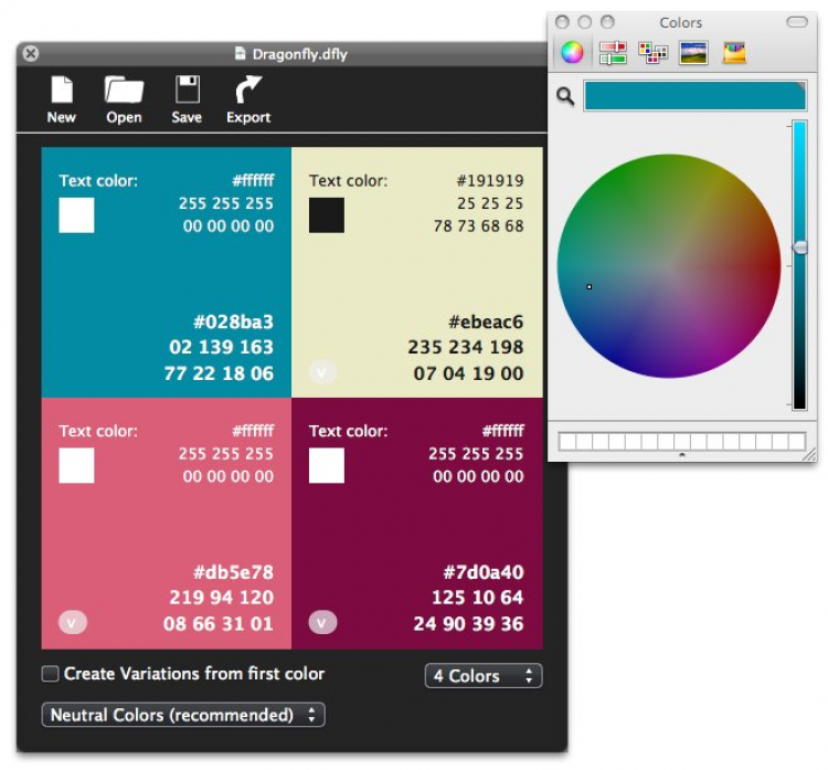 Dragonfly Интерактивная цветовая палитра, позволяющая брать образцы цвета и сравнивать их бок о бок. Незаменимый инструмент для веб-дизайнеров и цифровых художников, с помощью которого можно легко подобрать цветовую гамму для проекта.